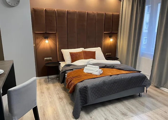 Das 1-Zimmer-Apartment Dk Premium Przy Parku Centralnym Olsztyn mit Blick auf den Garten liegt lediglich 1 km von der Burg Allenstein entfernt. Gäste können WLAN sowohl für geschäftliche als auch für private Zwecke nutzen.